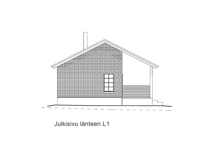Tässä vielä saunankin julkisivut. Toteutus todennäköisesti samalla tavalla kuin päärakennus eli tiilestä. Samaan tapaan molempiin ulkoverhoilu sekä terassin/parvekkeen rimoitukset, niin tulee komea kokonaisuus.