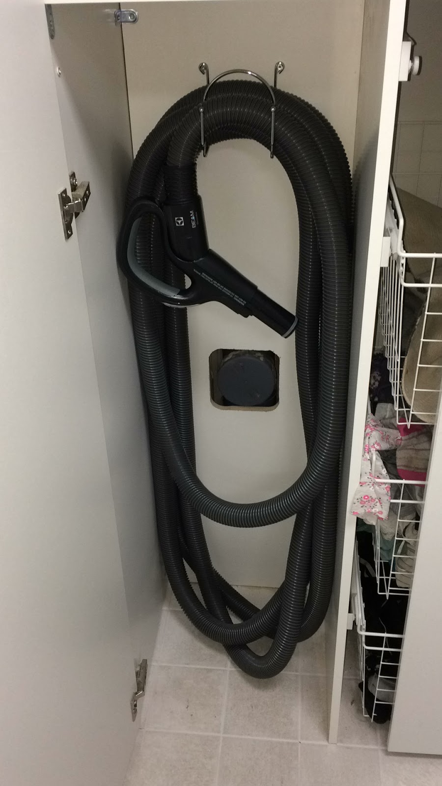 Sähköjen kanssa meni hieman enemmän aikaa. Ynnäilin heikkovirtapiuhoja yhteen ja aluksi homma ei meinannut lähteä millään sujumaan. Yläkerran kytkettyäni kävin kokeilemassa eikä imurasiaan tullut virtaa. Vaihdoin siellä piuhat toisinpäin jolloin imurasialle tuli virta mutta linjassa ennen sitä oleva keittiön Vroom-joustoputkisysteemi ei toiminut. Lopulta huomasin että siinä vika olikin vain käyttäjässä sillä aluksi en vain osannut käyttää sitä. Kun sitten taas kytkin alakerran siihen mukaan niin kone käynnistyi samantien eikä sammunut. Jossain siis oli oikosulku. Kävin läpi alakerran imuaukon ja rikkaluukun mutta loppujen lopuksi vika löytyikin ihan omista virityksistäni koneen luona. Sen fiksattuani kaikki luukut rupesivat toimimaan loistavasti ja yksinoikeuteni imurointiin oli päättynyt!